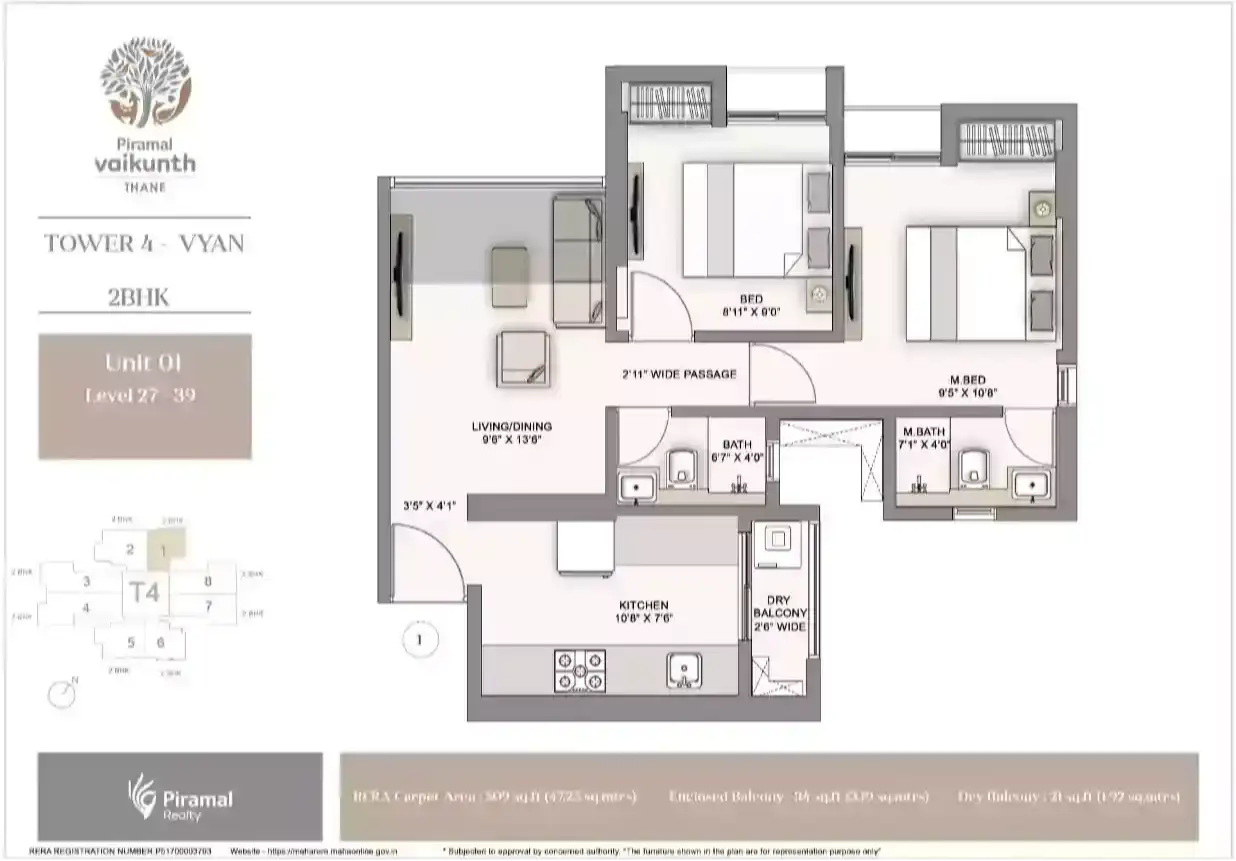 Spread over a 1-acre parcel within a 32-acre master-planned township, Piramal Vaikunth Thane West provides ready-to-move flats with east- and west-facing layouts that maximize natural light and ventilation. The project is RERA-registered (P51700005256), ensuring complete transparency and legal compliance for buyers. Additionally, residents have access to top-tier amenities such as landscaped gardens, clubhouses, sports courts, and children’s zones — all designed to enhance lifestyle and comfort. Therefore, for anyone exploring residential projects in Thane West, this development stands out as the perfect blend of security, convenience, and long-term investment value.