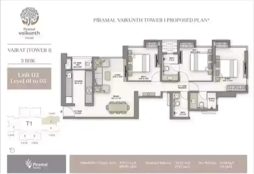 Piramal Vaikunth in Balkum offers a variety of well-crafted property options, designed to cater to different lifestyle needs. The project focuses on functional layouts and modern architecture, ensuring that every home feels spacious, comfortable, and thoughtfully planned. Buyers can choose from 1, 2, and 3 BHK flats, each offering the perfect blend of style, practicality, and convenience.